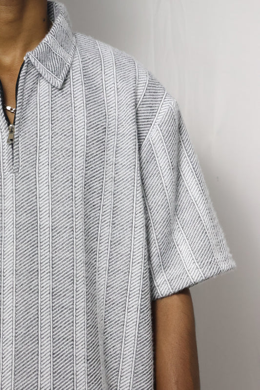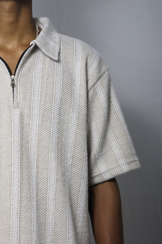 The 'Loft' Knit Zip Polo - Cloud White Stripe