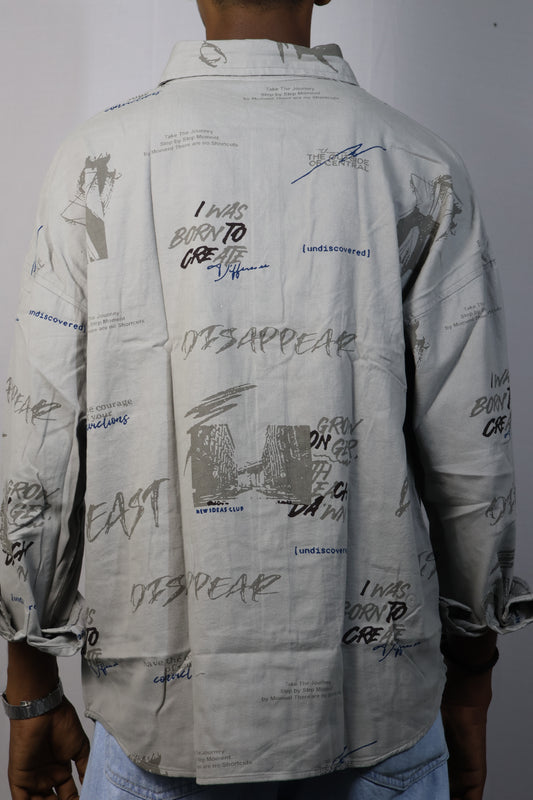 Motivational Oversized Gray Print Shirt - Embrace the Journey