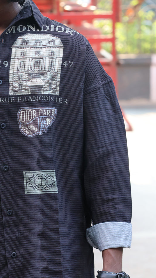 Midnight Black "Street Script" Oversized Button-Down