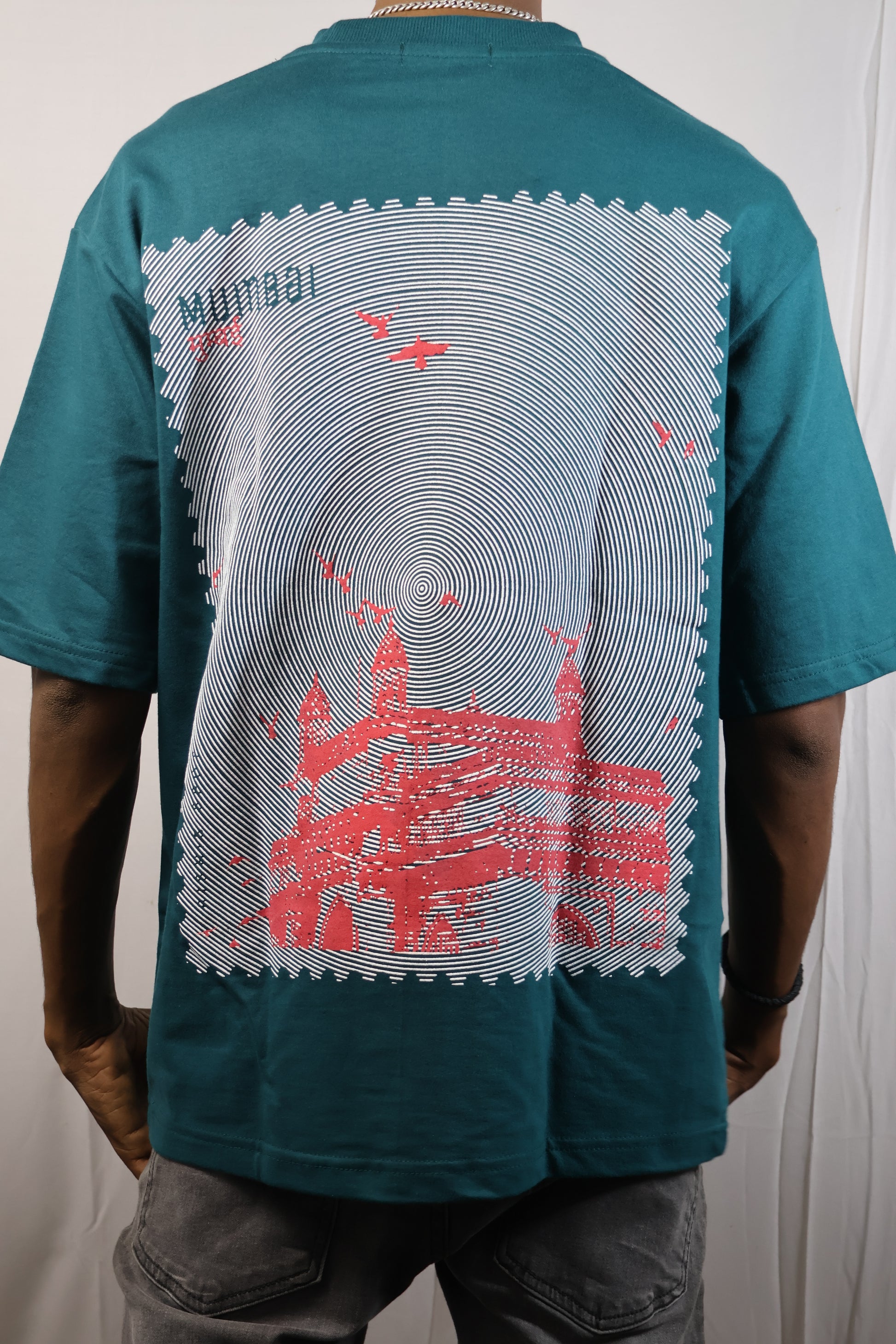 Show your love for the city of dreams with this stylish Mumbai Oversized T-Shirt. Designed for comfort and culture, this tee features a minimal “MUMBAI” print on the front and a bold, artistic back graphic showcasing the iconic Gateway of India with a hypnotic concentric-line design and flying birds for added flair.
