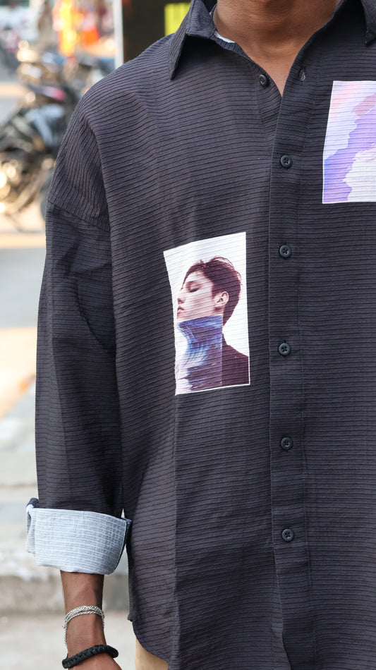 Portrait Series Ribbed Oversized Shirt - Charcoal