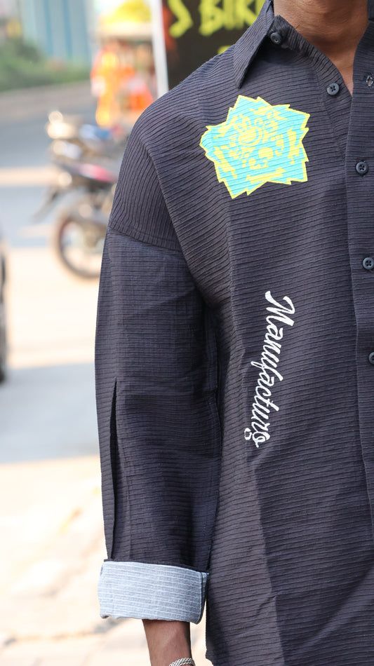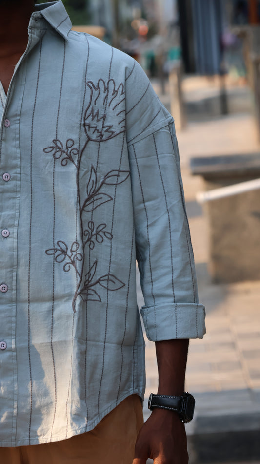 Grey Floral Embroidered Striped Shirt – Modern Statement Wear